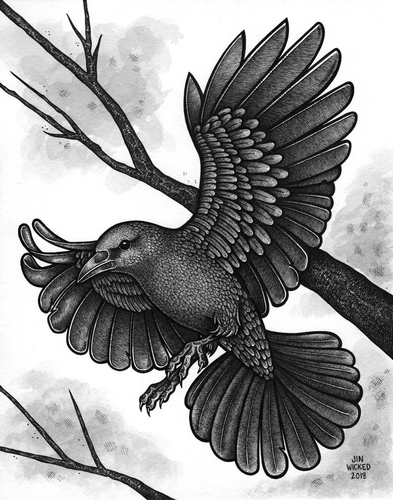 Flight 8x10 India Ink Drawing On Watercolour Paper Crow Etsy
